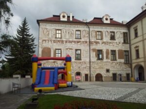 Náš tým zajistí kompletní servis – dopravu, instalaci, dohled i demontáž. Pokud chcete vytvořit ještě pestřejší program, doporučujeme hrad doplnit o další atrakce: malování na obličej, bublinový workshop, balónkové modelování nebo třeba cukrovou vatu.